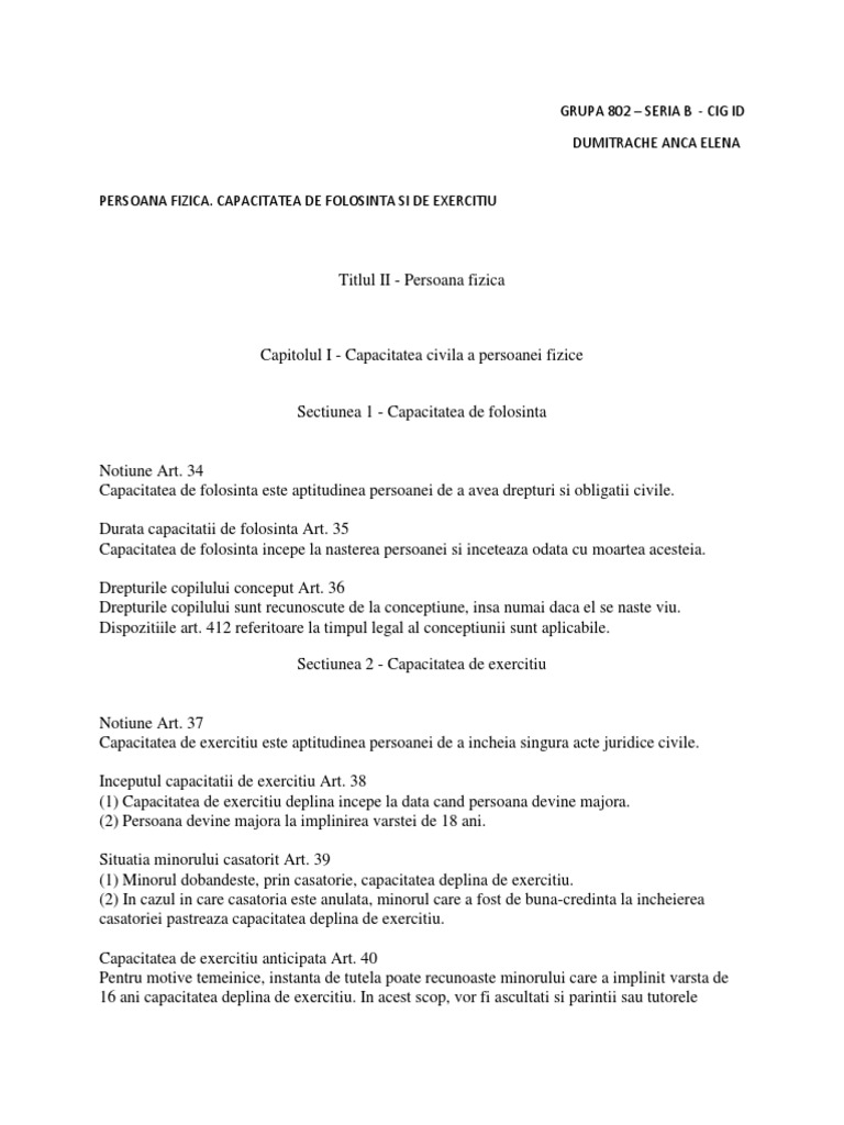 Capacitatea de folosință este aptitudinea persoanei de a avea drepturi și obligații civile. Capacitatea de folosinţă a persoanelor fizice este prevăzută în art. Iar imunităţile şi incompatibilităţile fac parte din statutul unei anumite funcţii şi. 35 jurisprudență reviste 11 doctrină 4 capacitatea de folosință începe la nașterea persoanei și încetează odată cu moartea acesteia.