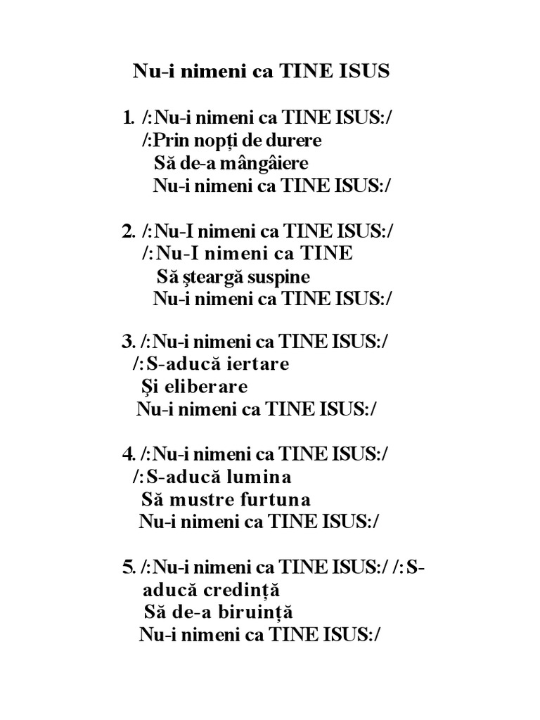 Nu i nimeni ca tine. Nu i nimeni ca tine isus iubit salvator cu viata mea te preamaresc si vreau sa ti spun ca te iubesc esti pace tarie turn de scapare si alin sufletul meu si trupul meu numai tie ti le nchin sa cante pamintul intreg d lui putere marire si lauda doar lui cu muntii si marea noi toti ne plecam inaintea numelui tau marile tale lucrari vom canta. Landon s lyric videos recommended for you. Nu i nimeni ca tine isus bis nu i nimeni ca tine să şteargă suspine nu i nimeni ca tine isus. Enjoy the videos and music you love upload original content and share it all with friends family and the world on youtube.