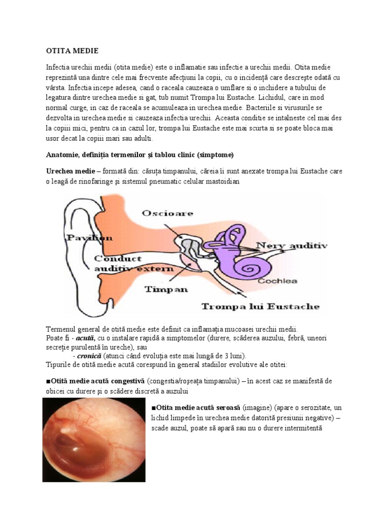 Otita se manifesta prin inflamarea urechii ca urmare a unei infectii cu microorganisme patogene. Ce este otita informatii generale si tipuri de otita. Simptome si tratament in otita interna. In cazul in care copiii manifesta unele dintre simptomele descrise mai sus sau aveti suspiciuni ca ar pute avea otita recomandarea noastra este sa l duceti la un medic orl ist.