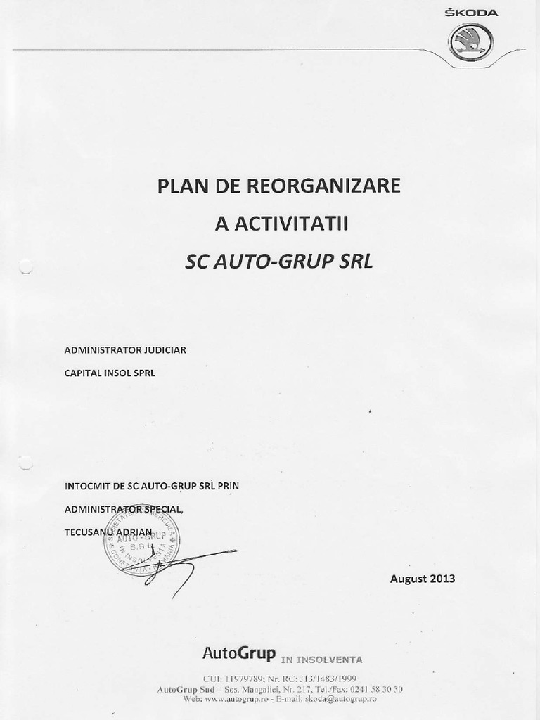 Plan de reorganizare. J07 235 2002 cui 14829425 desemnat prin sentința 108 din 26 feb 2015 pronunţată de tribunalul botoşani în dosarul 5229 40 2010 vinde prin licitaţie publică cu strigare. In masura in care planul de reorganizare a fost realizat de catre un expert contabil care a avut in vedere la elaborarea acestuia si aspectele contabile si economice ale debitoarei iar doctrina de specialitate opineaza ca parerea unui practician in insolventa strain de procedura ar fi indicata si suficienta considera ca un control al instantei de judecata in ceea ce priveste posibilitatea de realizare a planului exced prevederilor legale mentionate anterior atat timp cat din punct de. A din legea nr. Ratiunea pentru care s a optat la depunerea prezentului plan de către societatea.
