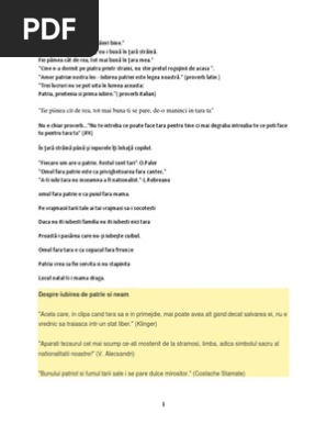 Prin întreaga sa operă prin activitatea literară și publică grigore vieru a promovat conștiința unității spațiului cultural românesc fiind prezent cu totală dăruire de sine în miezul fierbinte al celor mai importante evenimente. Compunere despre patriotism compunere despre patria mea românia magia copilărie. Home citate celebre autori celebri proverbe cenaclu adauga text librarie online. O compunere despre patrie patriotism și românia.