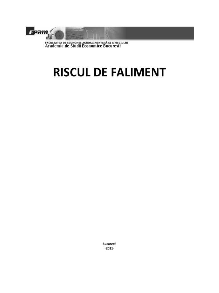 Riscul de faliment. Analiza riscului de faliment prin metodele clasice analiza lichiditate exigibilitate analiza functionala analiza prin rate analiza dinamica ofera informatii partiale si in general o apreciere asupra unei situatii trecute. Măsurarea riscului de faliment este etapa cea mai importantă de care analistul trebuie să ţină seama când face estimările viitoare. Intre risc si faliment exista o legatura directa in sensul ca cu cat o activitate implica un risc mai mare cu atat posibilitatea falimentului este mai mare. Riscul de faliment.